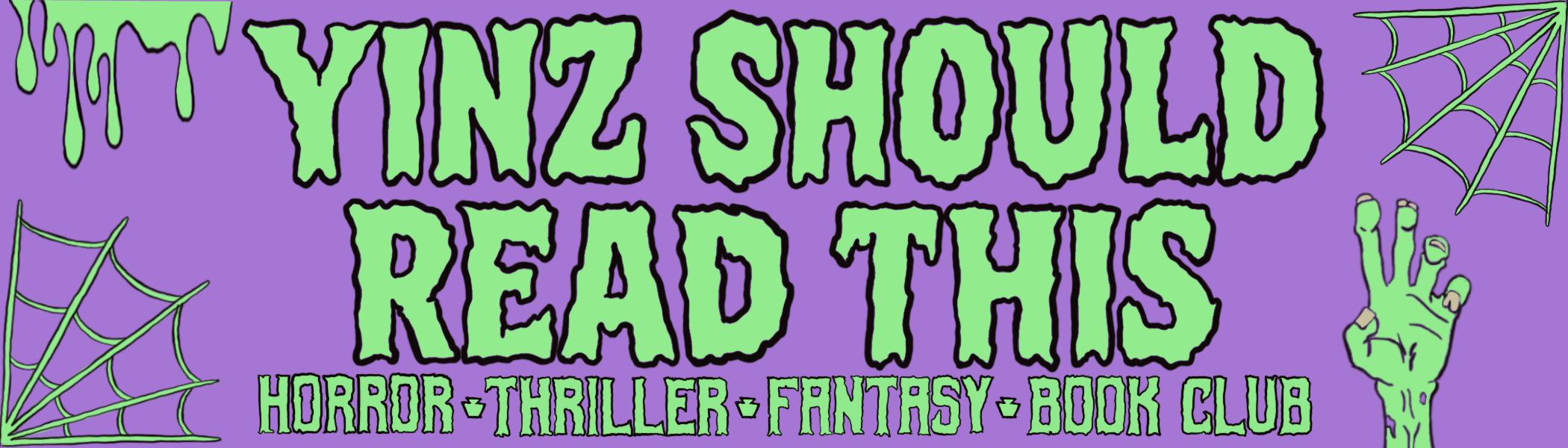MY NAME IS CHAD MEDVED AND I AM THE HEAD GHOUL OF ‘YINZ SHOULD READ THIS’ BOOK CLUB! WE’RE A MONTHLY GROUP THAT FOCUSES ON ALL THE GOOD HORROR, THRILLER, FANTASY, AND SCI-FI BOOKS OUT THERE! THE GROUP MEETS EACH MONTH FOR A DISCUSSION OF OUR CURRENT READ, MOVIES WE HAVE BEEN WATCHING,
